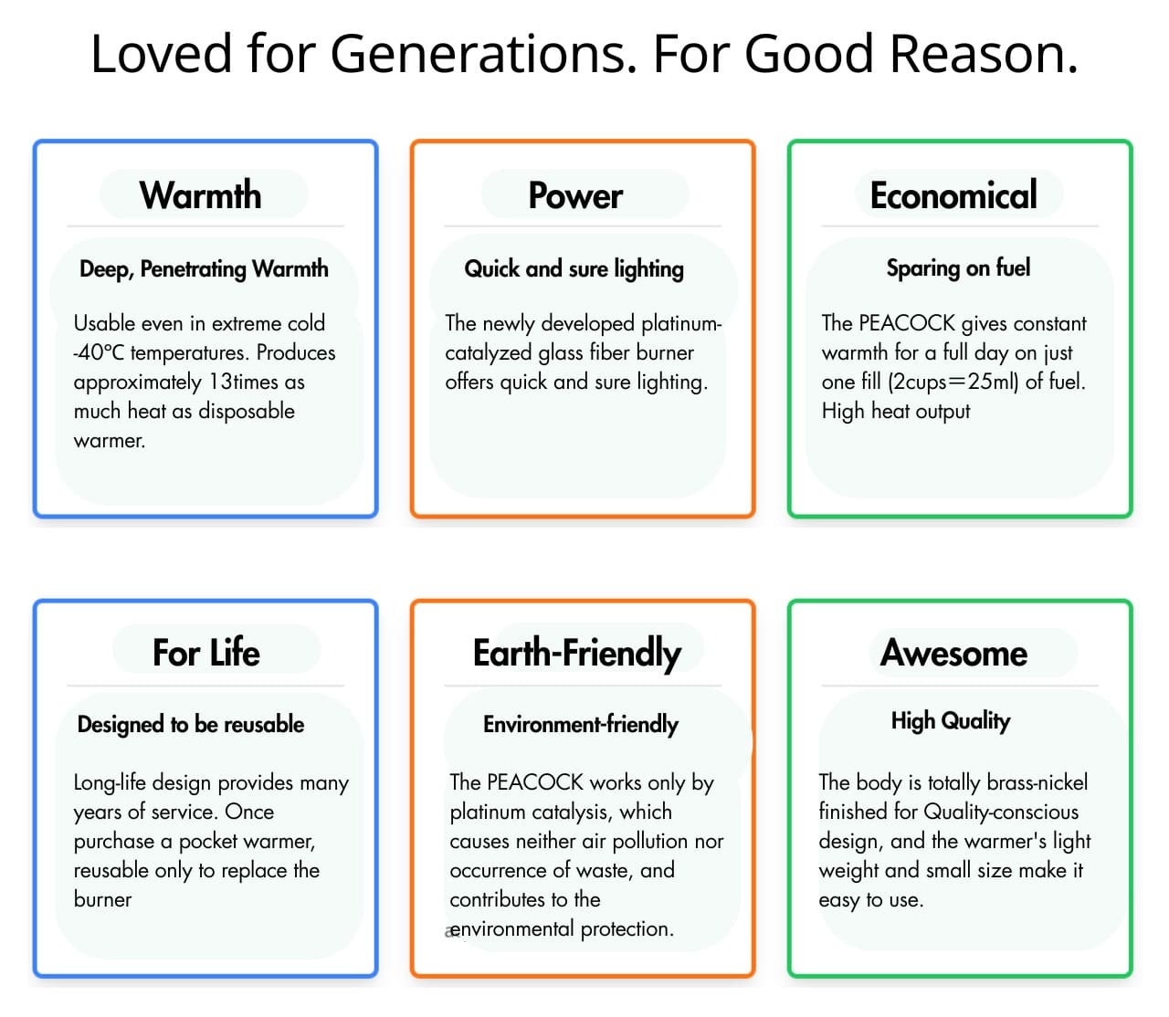 This eco-friendly hand warmer can be refilled with benzine and used repeatedly. It's a long-lasting product designed for extended use. Furthermore, all replacement parts are readily available, ensuring outstanding maintenance.