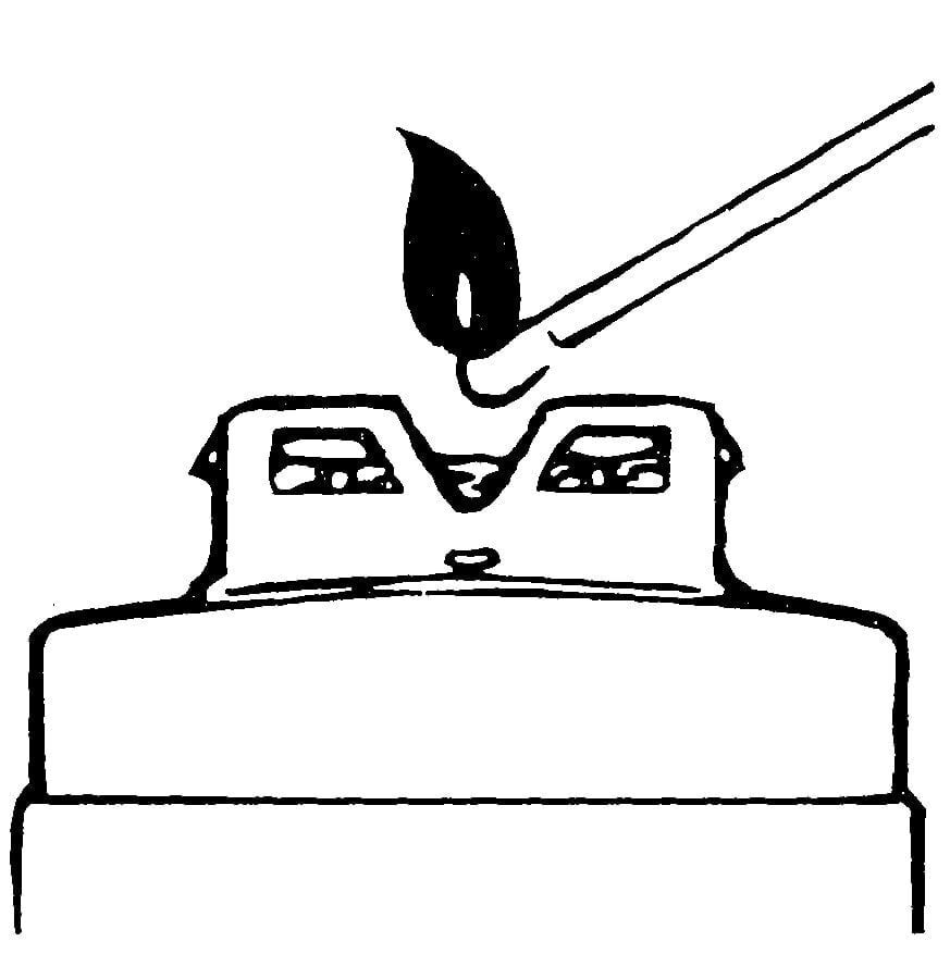 Insert the burner and cotact a fire to the burner element by a match or a cigarette lighter for 3 to 5 seconds.